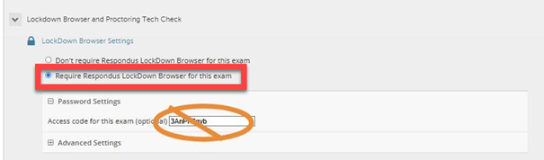 Optionally you may create an access code that students must enter to start the quiz. (LockDown Browser will prompt students to enter the instructor-provided code before proceeding with the quiz.)