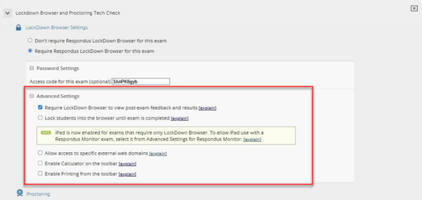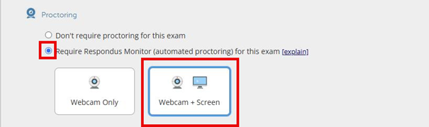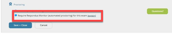 Require Monitor proctoring/recording by selecting “Require Respondus Monitor.”
