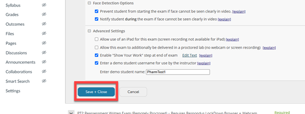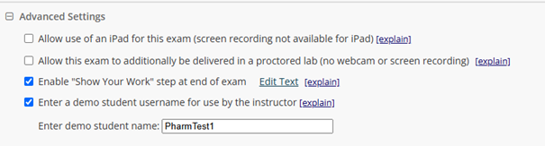 Enter a demo student username for use by the instructor (This allows faculty to log on using the the LockDown Browser and test/review the quiz/exam from the student’s perspective (Click here for more info)