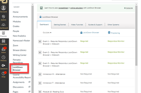 From the Course Navigation on the left in Canvas, select “LockDown Browser.”